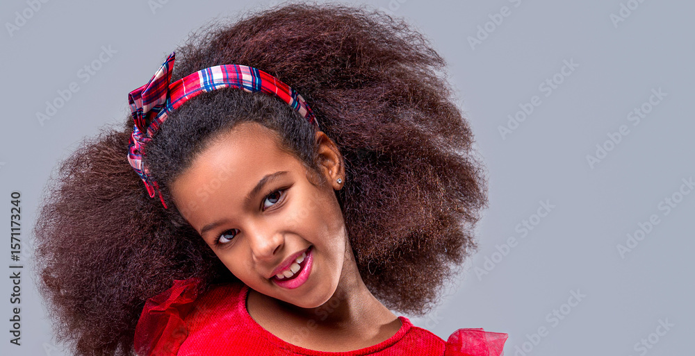 Smile little african american girl. African girl smile and curly hair, smile, laughing, portrait. Child girl smiling