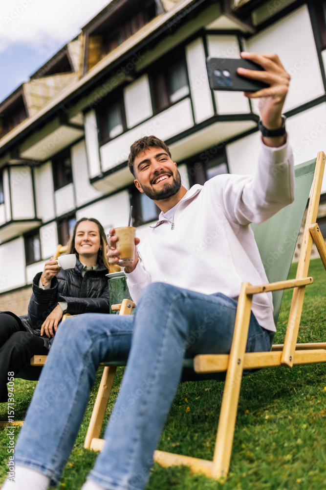 Young Couple Taking a Selfie While Relaxing at Mountain Resort