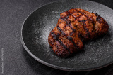 Meat, juicy beef steak grilled cooked to perfection for lunch. Barbecued steak