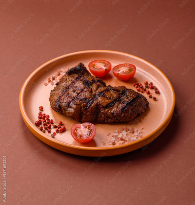 Meat, juicy beef steak grilled cooked to perfection for lunch. Barbecued steak