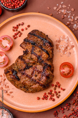 Meat, juicy beef steak grilled cooked to perfection for lunch. Barbecued steak