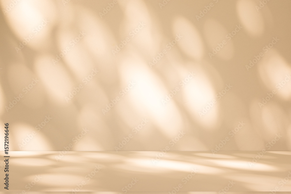 Wall interior autumn background, studio, and backdrops show products. with shadow leaf color beige background for text insertion and presentation of product