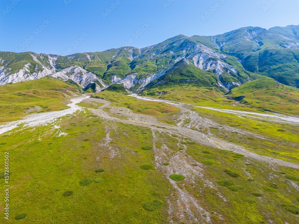 Lush green mountains with clear blue sky