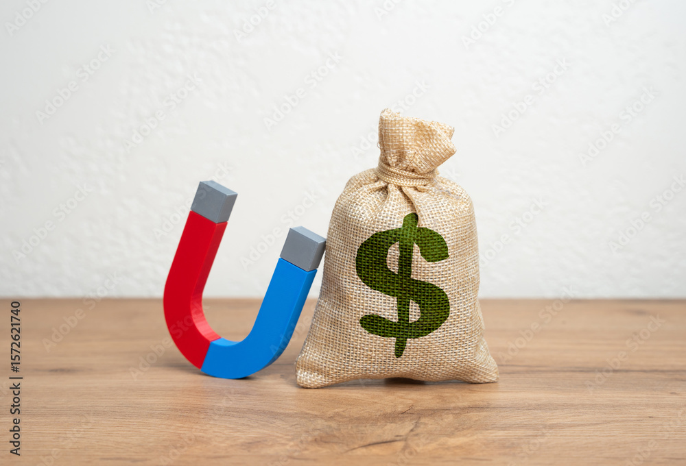 The dollar is a money bag and a money magnet. Attract investments and capital. Investor interest, foreign direct investment, and economic pull factors. Financial attraction, successful fundraising