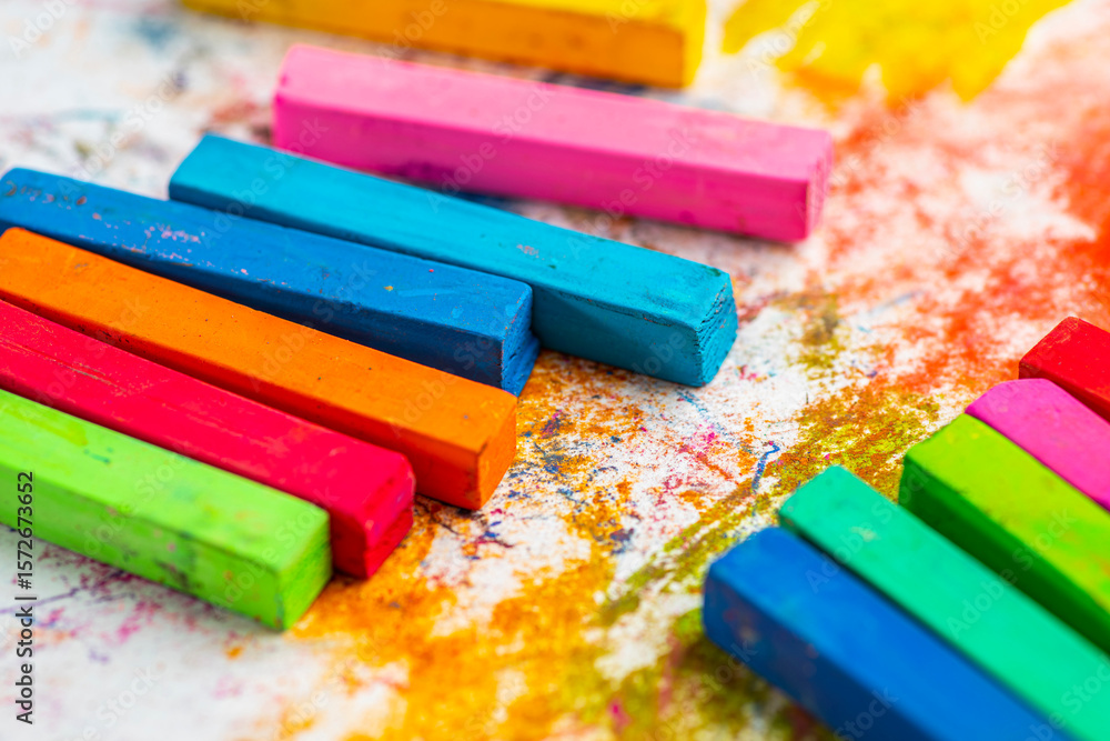Soft pastels, bright colours. Colored chalk for creativity, drawing and hobbies.