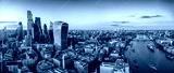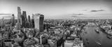 Panoramic aerial view of the City of London skyline with Tower Bridge and the River Thames during sunset time