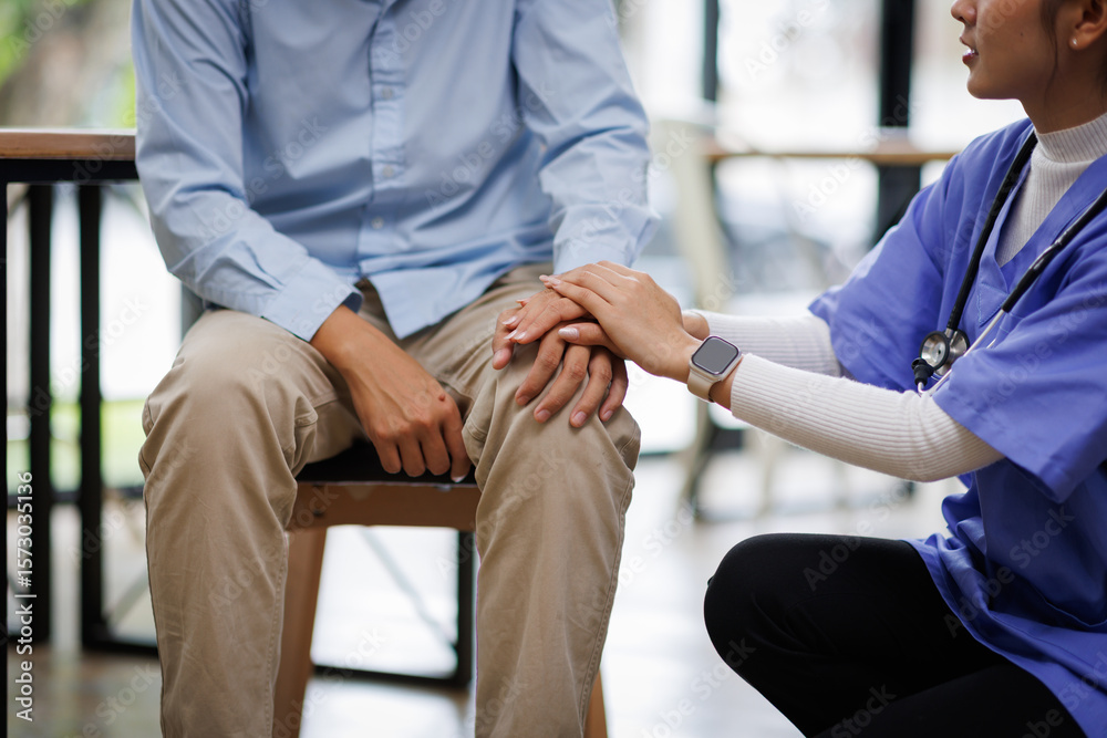 Help health or Doctor or nurse holding hands with patient zoom for support