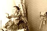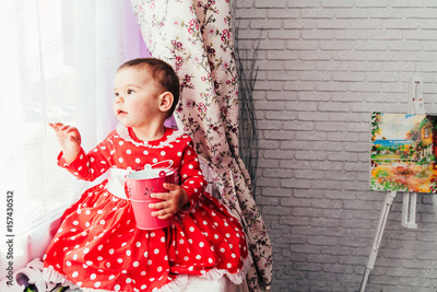 cute baby girl playing next to the window