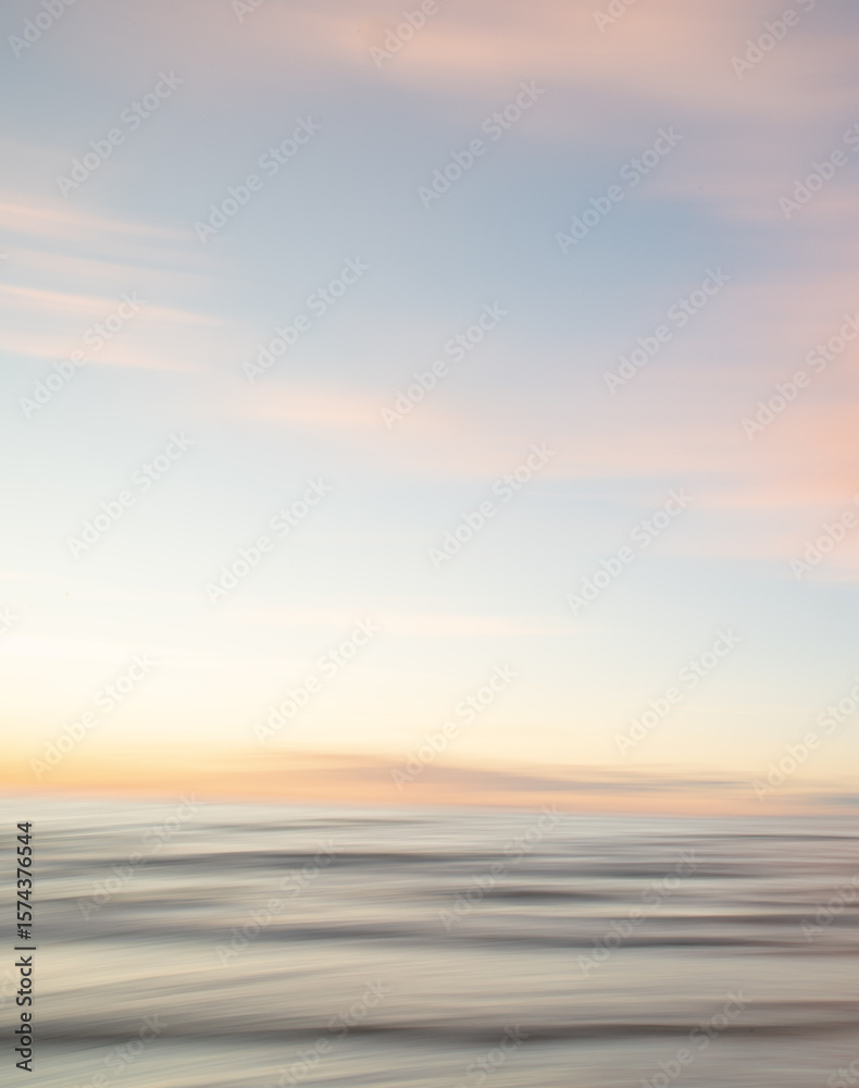 A dreamy, impressionistic paint like blurred sea sunset background with gently soft pastel colours. Vertical photo.