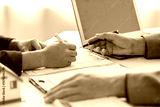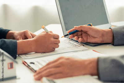 The real estate agent discussed the terms of the home purchase contract and asked the client to sign the document to legally complete the contract.