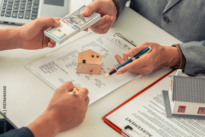The real estate agent discussed the terms of the home purchase contract and asked the client to sign the document to legally complete the contract.