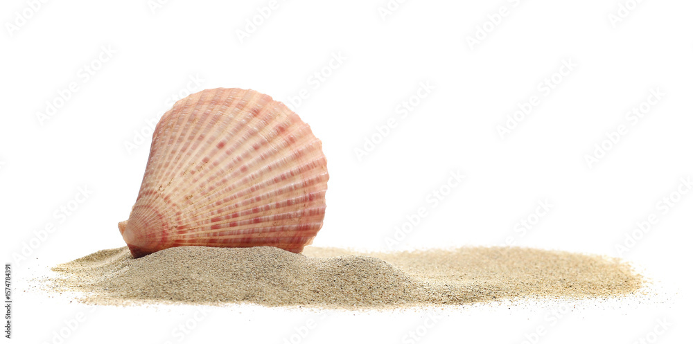shell in beach sand isolated on white background, side view