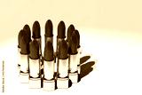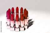 set Luxurious golden lipsticks scattered on light background, elegance and beauty in cosmetics, Beauty industry glamour, 3d render