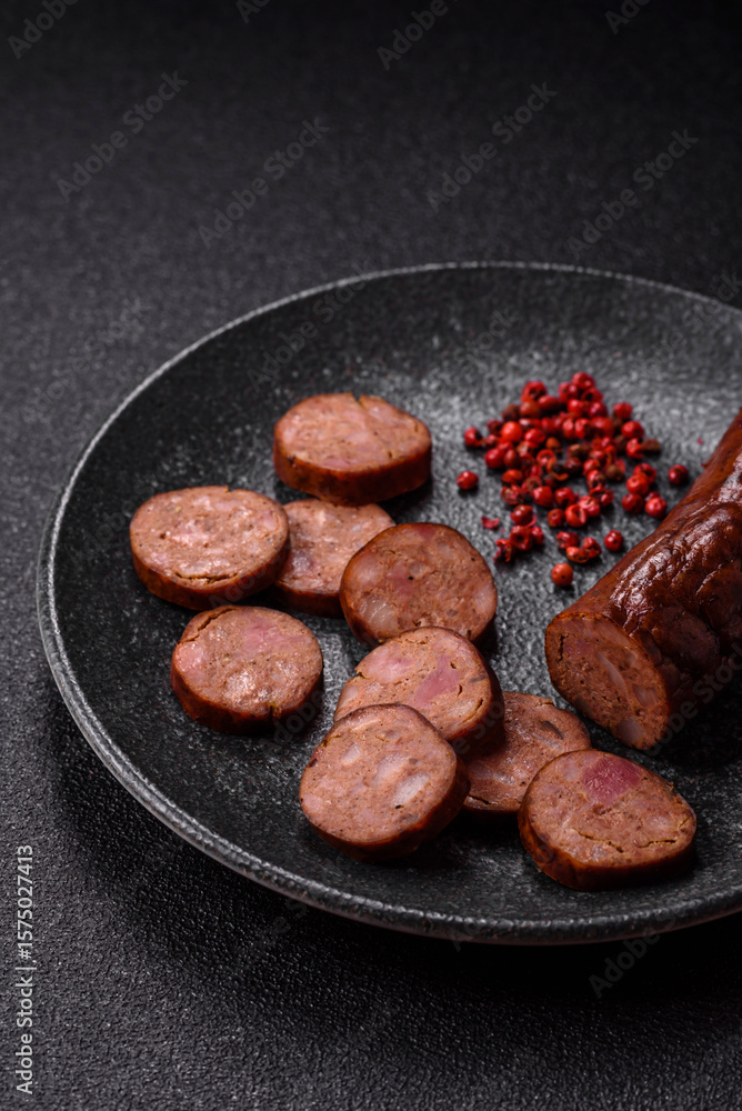 Homemade meat or vegan sausage grilled with spices. Homemade sausage cooked on barbecue