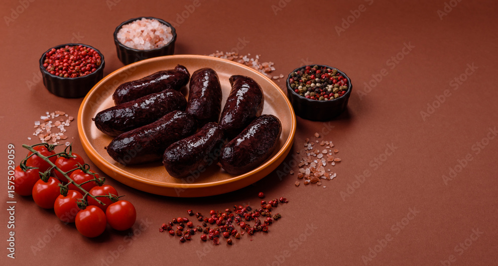 Blood sausage, pudding, meat food with lard and spices. Blood sausage