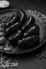 Blood sausage, pudding, meat food with lard and spices. Blood sausage