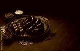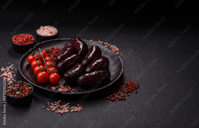 Blood sausage, pudding, meat food with lard and spices. Blood sausage