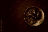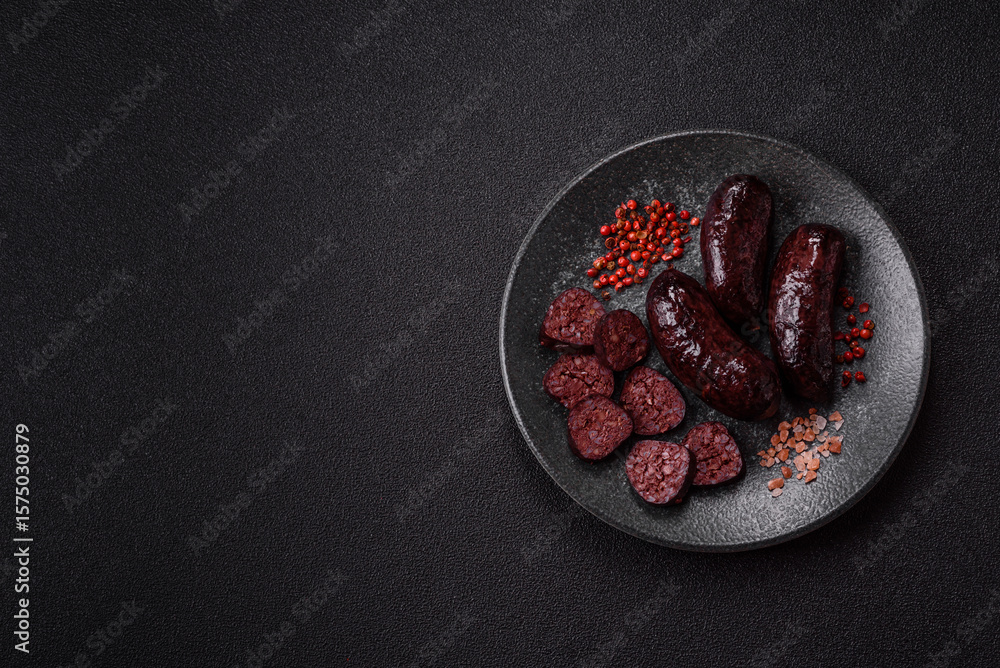 Blood sausage, pudding, meat food with lard and spices. Blood sausage