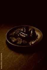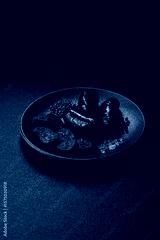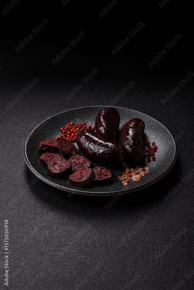 Blood sausage, pudding, meat food with lard and spices. Blood sausage