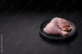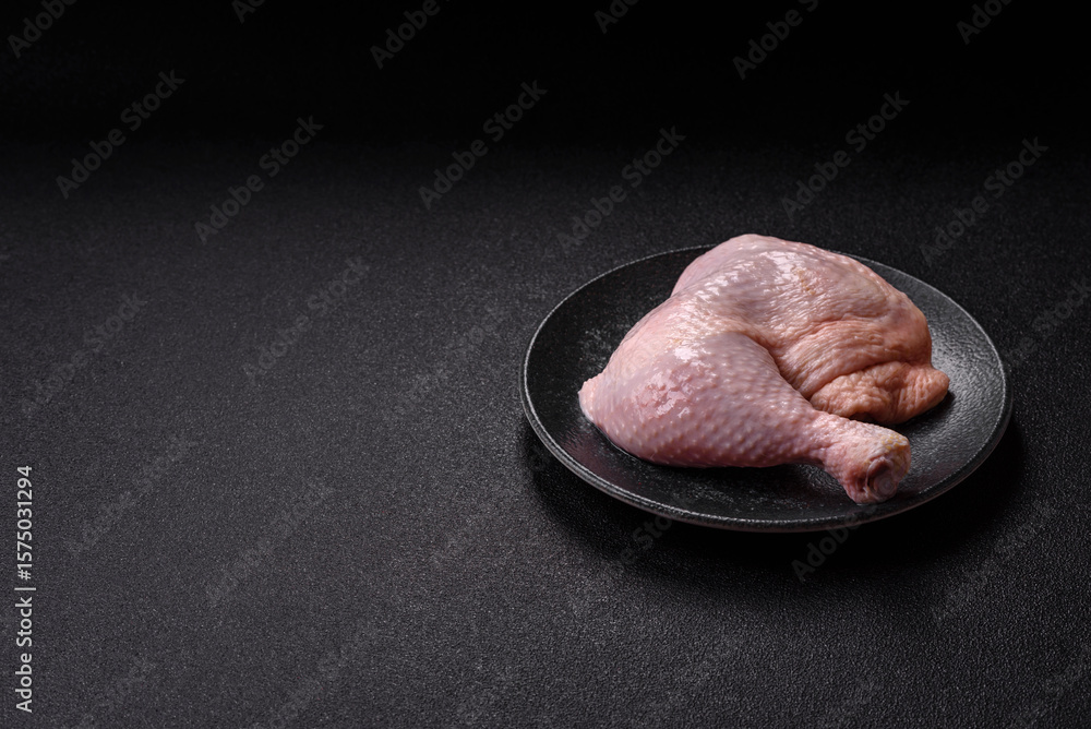Chicken raw leg or quarter, fresh meat for cooking on barbecue. Chicken quarter