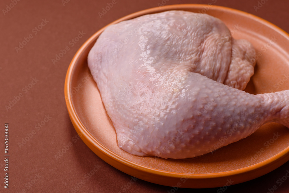 Chicken raw leg or quarter, fresh meat for cooking on barbecue. Chicken quarter