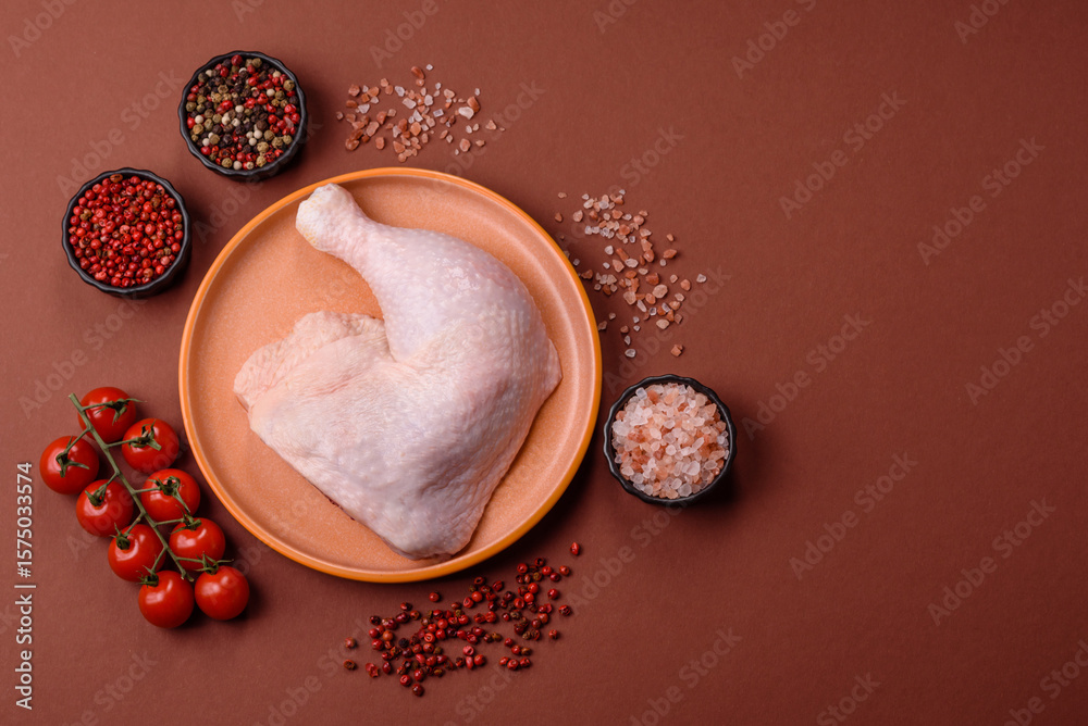 Chicken raw leg or quarter, fresh meat for cooking on barbecue. Chicken quarter