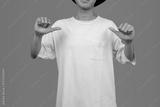 Close Up Of Cheerful young Man In White T-Shirt Making Me Gesture With His Thumbs
