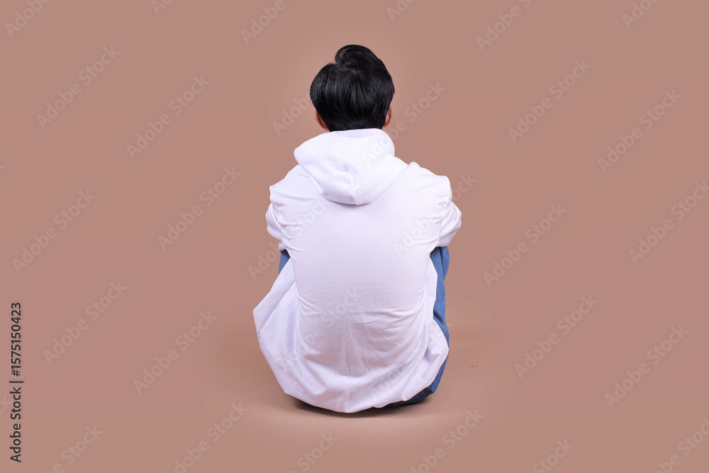 Young Man Showcasing The back of His Plain White Hoodie for Mockup Design