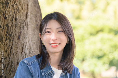公園で微笑む日本人女性