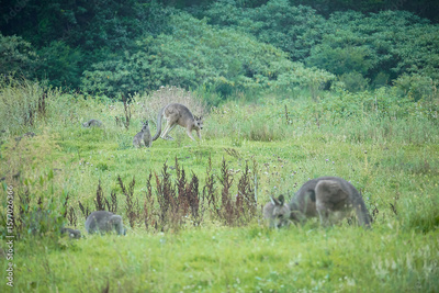 Eastern grey kangaroos in its natural forest environment in Australia.