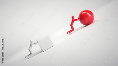 Think Differently | Smart Work vs Hard Work Concept with Red Sphere and White Cubes – 3D