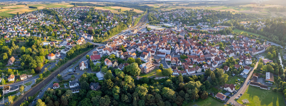 Aerial view around the old town in the city Treysa 34613 Schwalmstadt on an sunny spring day