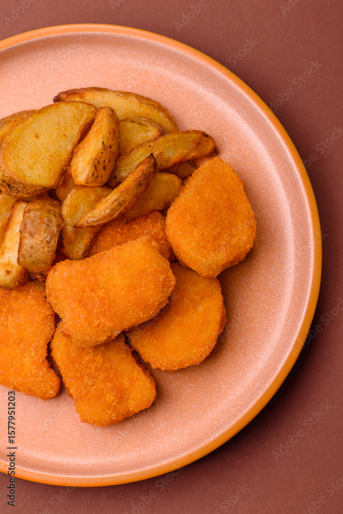 Crispy chicken nuggets, meat takeaway meal with salt. Chicken nuggets, fast food