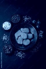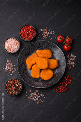 Crispy chicken nuggets, meat takeaway meal with salt. Chicken nuggets, fast food