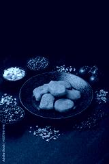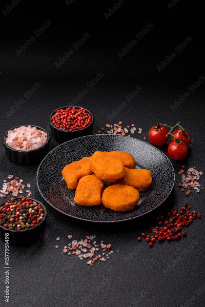 Crispy chicken nuggets, meat takeaway meal with salt. Chicken nuggets, fast food