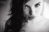 close-up portrait of a beautiful young sexy brunette girl with expressive eyes and eyes and full lips, posing for the camera