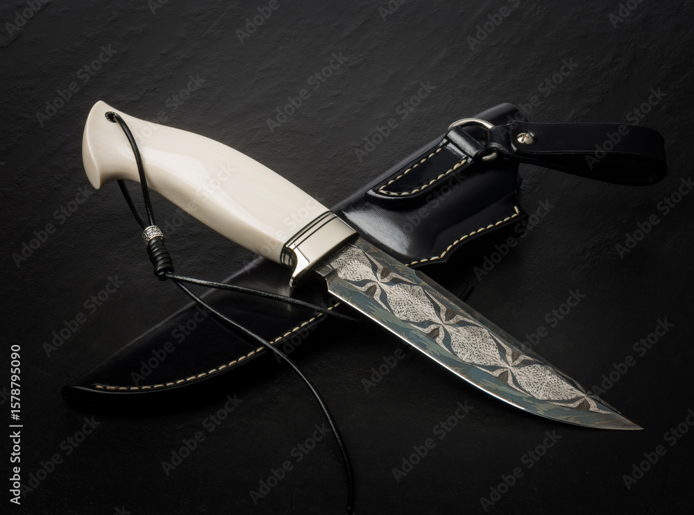 Souvenir collectible knife with sheaths. Bone handle, on black.