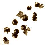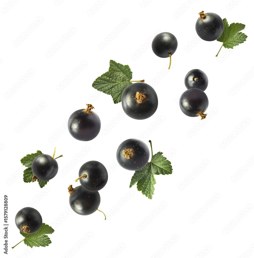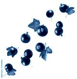 Fresh Ripe Black Currant berries falling in the air isolated on white background