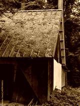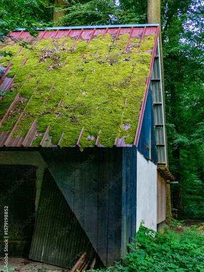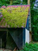 Moos auf dem Dach eines Hauses im Wald