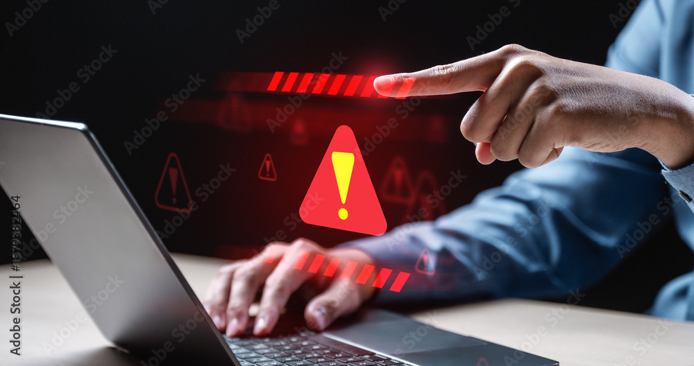 Warning cybersecurity crime sign. Cyber security system firewall. Data protection warning sign. Cyberspace secure networking protection.