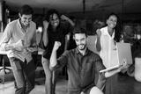 Group of young multi-ethnic startup business team collaborating on project in modern office