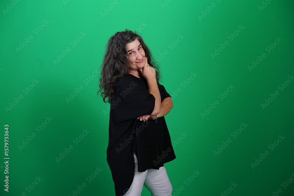 Unedited Portrait of Woman’s Face Expressing Various Emotions – Green Studio Background