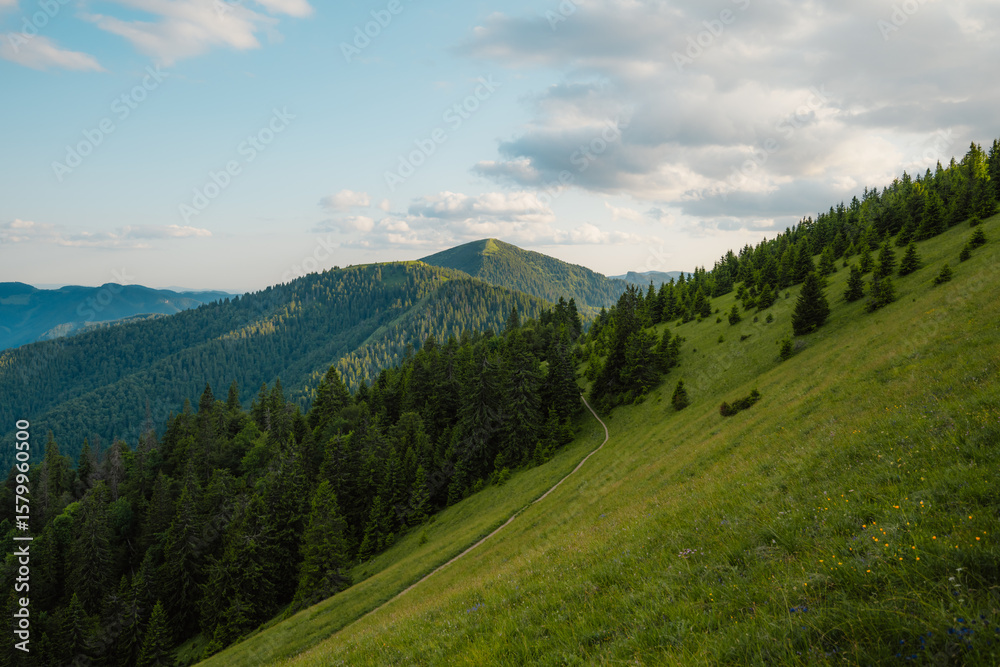 Hiking on Skalna alpa near smrekovica in Great Fatra. Hiking in Slovakia mountains landscape. Velka Fatra national park, Slovakia