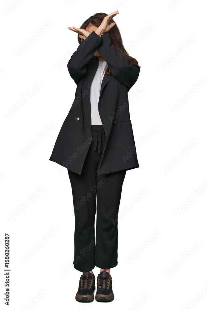 Middle Eastern in business attire keeping two arms crossed, denial concept.