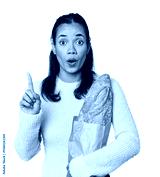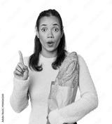 Young Filipina holding artisan bread having some great idea, concept of creativity.