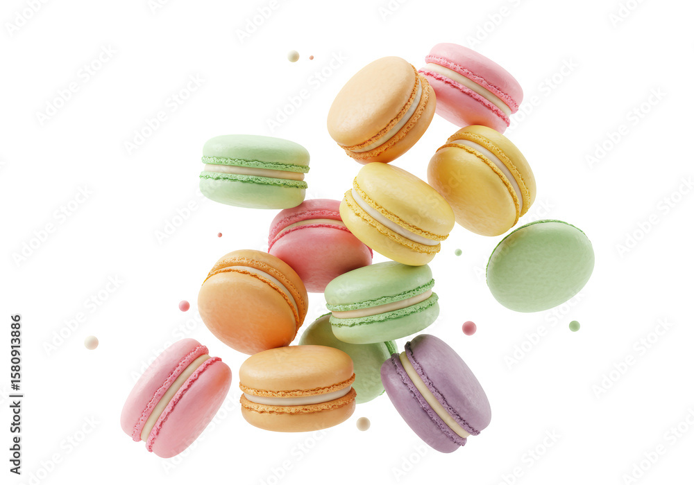 Isolated Pastel Macarons Falling in Delightful Cascade