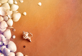 Summer, beige, light background with seashells and sand