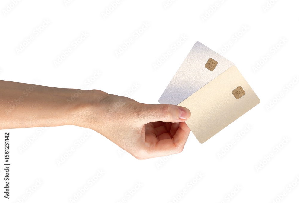 Secure finance. Card with chip in hand, revenue, salary, shopping movement, commerce, payment,
