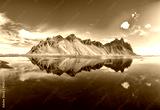 Impressive sunny day and gorgeous reflection of Vestrahorn mountaine on Stokksnes cape in Iceland.