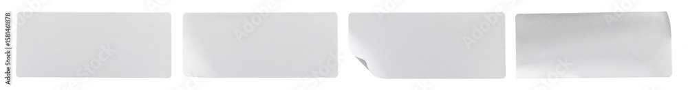 collection of blank white paper mockup crumpled stickers, white paper, adhesive or labels, wrinkled plastic stickers, blank template of labels or price tags. clipping path.